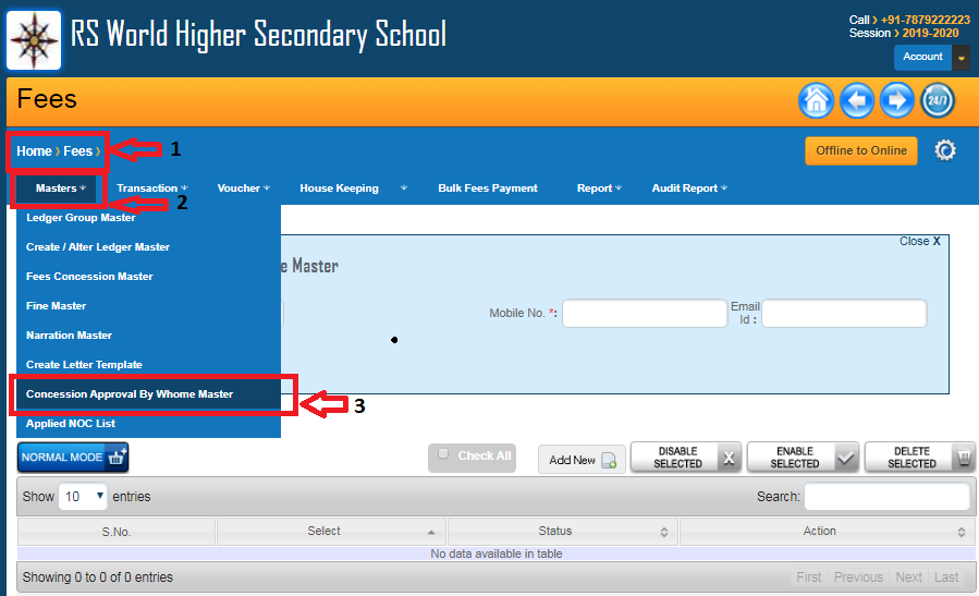 4. There is an option of Concession Approved by Whom Master click on this option as you can see below image.