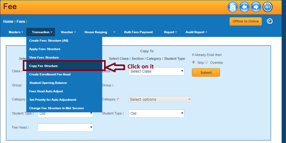 4. There is an option of Copy Fess Structure click on this option as shown below image.
